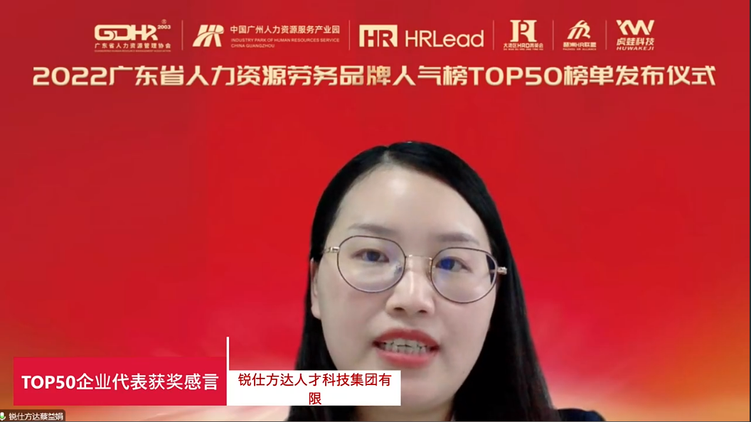 锐仕方达人才科技集团有限公司两广大区负责人蔡益娟发言